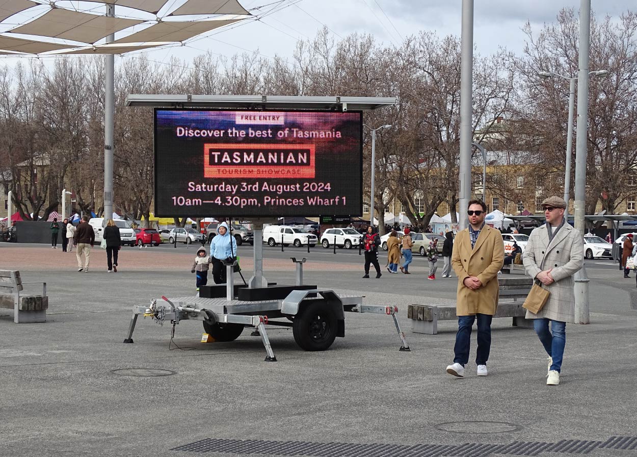 Project Clients got their message out with our solar ad trailer. It would operate 24/7 on 100% solar power and allowed for placement with no access to power. And of course the it's been wonderful in Tassie weather. All ProjectsSummary Audience: Locals and visitors Location: Multiple locations around Hobart Products: Solar Ad Trailers Category: Media, [...]
